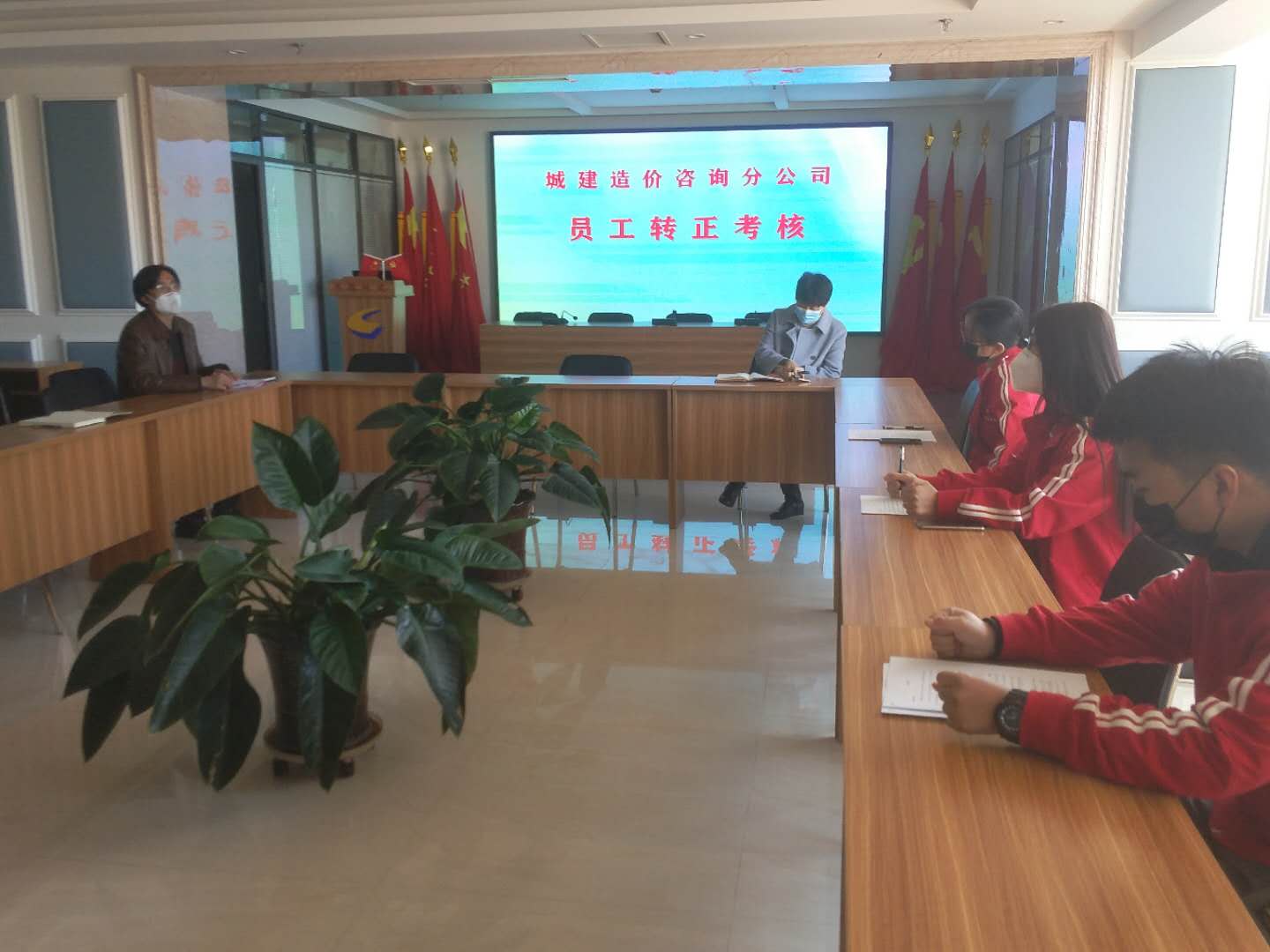 2020年3月27日,在公司會議室舉行了城建新員工轉正考核,本次共有4位新同事參加轉正考核,分別為造價分公司的常生、左會芳、張雙、張興兵。