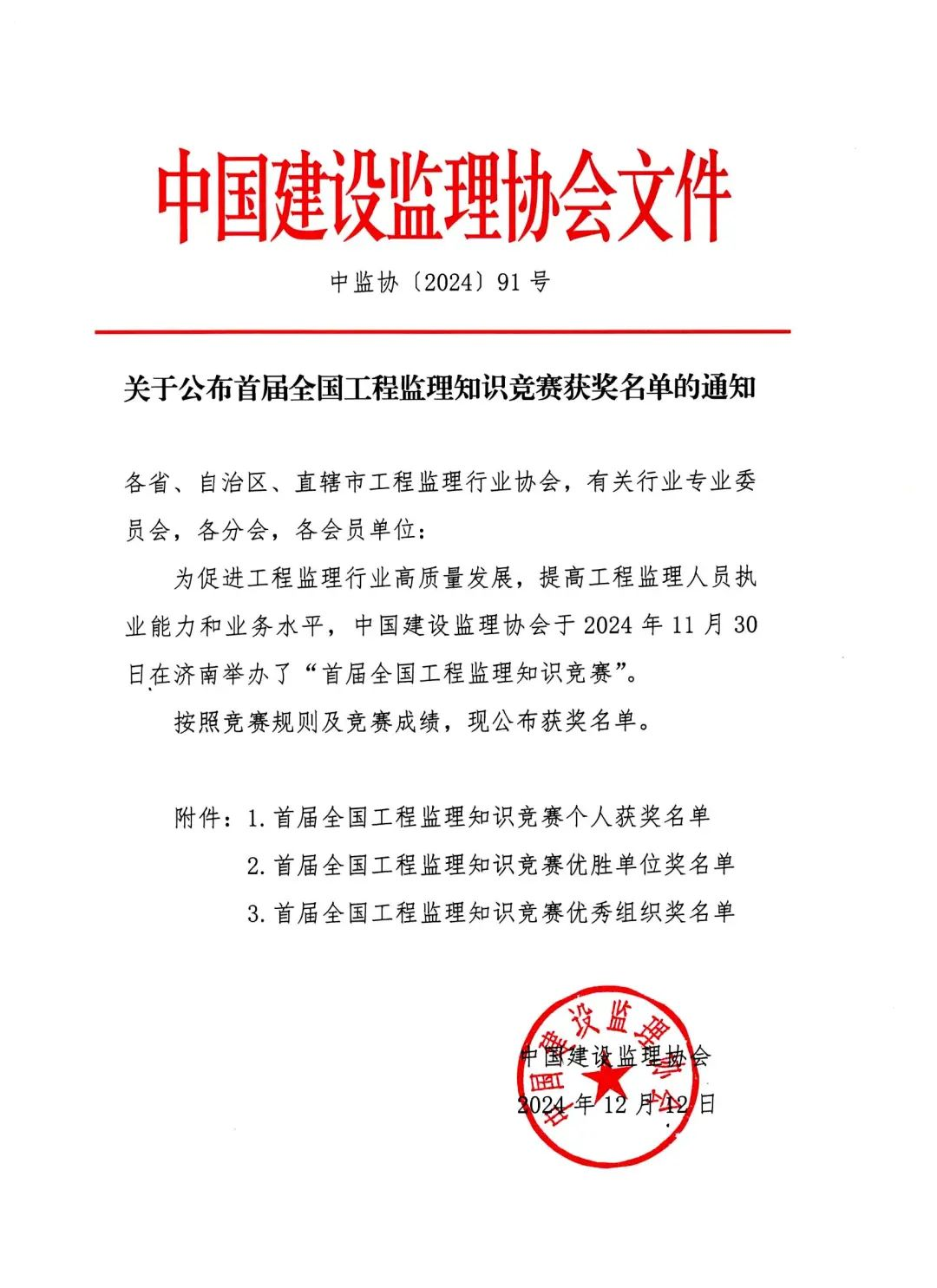 熱烈祝賀承德城建工程項(xiàng)目管理有限公司在首屆全國工程監(jiān)理知識競賽中榮獲“全國優(yōu)勝單位獎”! 我們的勞曉陽同志更是在企業(yè)技術(shù)負(fù)責(zé)人組中榮獲二等獎,展現(xiàn)了承德城建的卓越實(shí)力和奮斗精神!